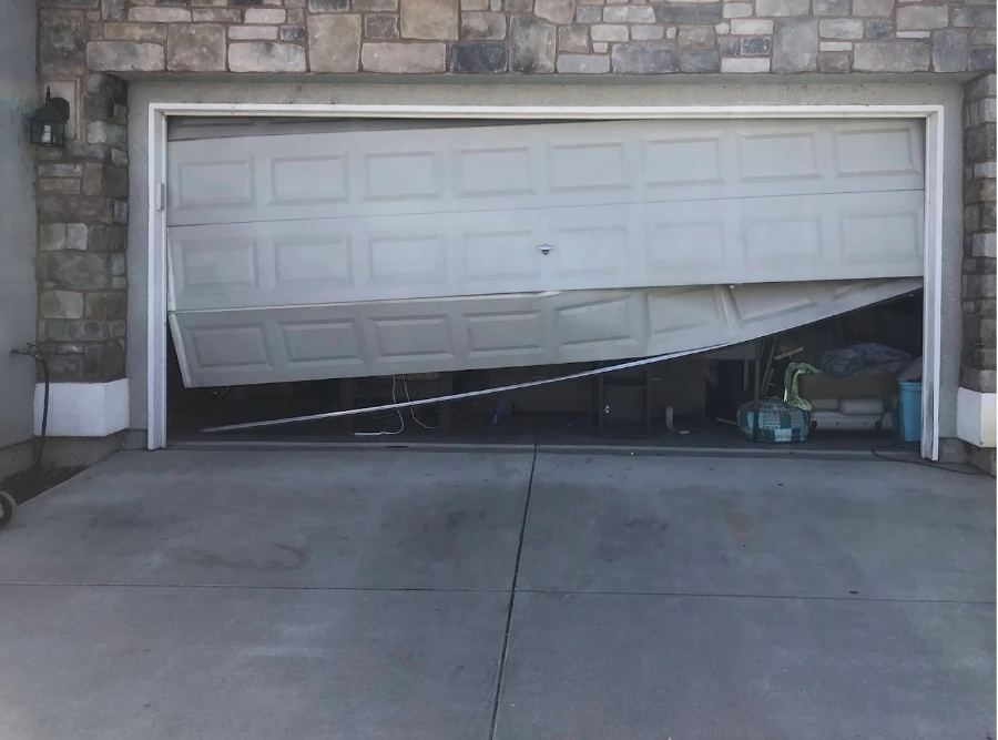 Emergencies usually involve broken springs, snapped cables, doors stuck halfway open, or doors completely off track.